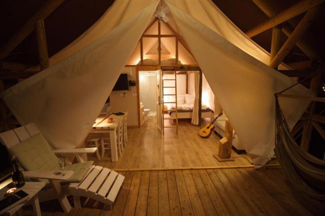 tvoří jej moderní mobilní domy a stylové stany v srdci nedotčené