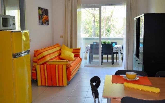 m od pláže, obklopená spoločnou záhradou. Pláž: cca 50 m, piesočnatá pláž s pozvoľným vstupom do mora, plážový servis od 4. radu v období 1.5.-30.9. (1 slnečník + 1 lehátko + 1 plážová stolička/apartmán). V časti Bibione Pineda bude plážový servis dostupný od polovice mája do polovice septembra. Centrum: cca 100 m od centra. Ubytovanie: apartmány sú vybavené TV-SAT, trezorom, kávovarom, mikrovlnkou a klimatizáciou.