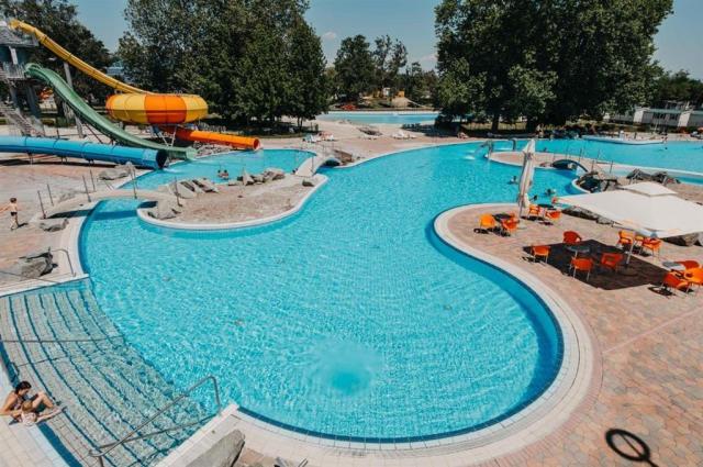 V Dolejnské nížině, která je obklopena vinicemi, při soutoku řek Sávy a Krky v blízkosti chorvatských hranic leží jedny z nejmodernějších, největších a nejznámějších lázní v celém Slovinsku, které jsou obklopené zalesněnými kopci a horami Gorjanci. První zmínky o nalezení pramene se datují k roku 1797. O třicet let později došlo k velkým záplavám a na nějakou dobu došlo k přerušení využívání termální vody. Až poté v roce 1854 byly prameny opět nalezeny. Největší obrat nastal po roce 1963, kdy byly nalezeny další prameny a lázeňské středisko se postupem let začalo rozvíjet až do dnešní podoby. Z hloubky 300-600 metrů si razí cestu celkem 11 pramenů s teplotou vody 42-63 °C. Místní voda má příznivé účinky na revmatické a neurologické onemocnění, pooperační stavy, na problémy s pohybovým aparátem, rehabilitace po úrazech a operacích prsu. Lázně nenavštěvují pouze pacienti se zdravotními problémy, ale i klienti k rekreaci. Celý komplex je tvořen vnitřními a venkovními bazény tzn. Riviérami (Thermal Riviera). Vnitřní riviéra (zimní) je složena z bazénů o teplotě 30-33 °C s dalšími vodními atrakcemi a saunovým světem otevřeným každý týden od pátku do neděle (8 druhů saun). Vnější termální riviéra (letní) se pyšní 10 bazény o teplotě 26-36 °C (otevřena cca od května do září v závislosti na počasí). Chlouba areálu je 50m olympijský plavecký bazén (teplota 26 °C) a další bazény s umělými vlnami, vířivkami, tobogány a jinými atrakcemi. Hotel Toplice****Proč zvolit hotel Toplice? Protože nejen děti, ale i dospělí mají rádi bazény! Hotel je propojen se zimní termální riviérou a nachází se v blízkosti letní termální riviéry, což z něj činí vynikající volbu nejen pro rodiny, ale i pro ty, kteří mají rádi aktivní dovolenou. Hotel je vybaven recepcí, úschovnou zavazadel, výtahem, restaurací, barem, konferenční místností, fitness centrem, WiFi připojením (zdarma) a parkovištěm (zdarma, omezena kapacita). Dvoulůžkové pokoje s balkonem s možností jedné přistýlkyPokoj o výměře cca 30 m2 jsou vybaveny vlastním sociálním zařízením, klimatizací, fénem, trezorem, SAT/TV, telefonem, minibarem, WiFi a balkonem nebo terasou. Přistýlka je řešena formou rozkládacího křesla. Dítě do 5,99 let je v pokoji zdarma vždy bez nároku na lůžko (spí na lůžku s rodiči). Pokoje je možné obsadit také jednotlivcem. Suite s balkonem a možností až dvou přistýlekSuite o výměře cca 48-55 m2 jsou vybaveny vlastním sociálním zařízením, klimatizací, fénem, trezorem, SAT/TV, telefonem, minibarem, WiFi a balkonem. Přistýlka je řešena formou rozkládacího pohovky až pro 2 osoby. Apartmán s balkonem a možností až dvou přistýlekApartmány o výměře cca 50 m2 se skládají ze dvou oddělených místností a jsou vybaveny vlastním sociálním zařízením, dalším WC zvlášť, klimatizací, fénem, trezorem, SAT/TV, telefonem, minibarem, WiFi a balkonem. Přistýlka je řešena formou rozkládacího pohovky až pro 2 osoby v obývacím pokoji. Stravování formou polopenze nebo plné penze
