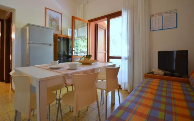 a zelenej oblasti Lido dei Pini, 400 m od pláže. Pláž: 400 m, piesočnatá pláž s pozvoľným vstupom do mora, plážový servis od 4. radu v období 1.5.-30.9. (1 slnečník + 1 lehátko + 1 plážová stolička/apartmán). Centrum: 100 m od centra. Ubytovanie: skladá sa z 8 domov so 4 nezávislými apartmánmi, každý apartmán má vlastnú záhradku s krbom, trezor, mikrovlnnú rúru, kávovar, TV-SAT, klimatizáciu. Typ C1 pre 3-5 osôb: na prvom poschodí, zložený