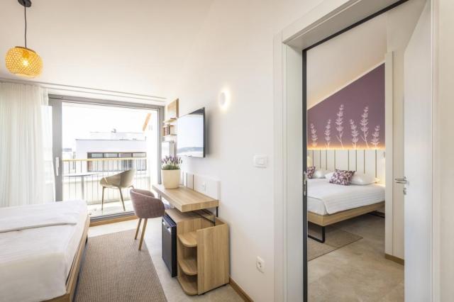 Městečko Portorož se nachází u slovinského pobřeží 30 km od italského města Trieste a 120 km od hlavního města Slovinska Lublaně. Název města doslovně znamená "přístav růží". Archeologické nálezy dokazují, že místo bylo osídleno už v dobách Římské říše. Do 19. století byla Portorož malou vesnicí, kterou obývali především rybáři a těžaři soli. V roce 1891 zde byly vybudovány první lázně a dodnes je lázeňství jednou z hlavních priorit, co může Portorož nabídnout. Portorož je malé poklidné městečko, které nabízí veškeré služby, které oceníte na letní dovolené u moře. V této destinaci jsou písečné pláže s pozvolným vstupem do moře, takže jsou vhodné i pro děti. V okolí pláže si můžete užít kavárny, bary a občerstvení. Portorož se nachází v dobré dostupnosti z ČR, z Brna vám cesta autem zabere cca 6,5 hodiny. Hotel Vile Park*** PremiumHotel Vile Park*** se nachází v areálu hotelu Histrion a skládá se z 5 vilek, které nabízí ubytování v 216 pokojích: Vila Galeb, Vila Galeja, Vila Orada a Vila Nimfa a Barka. Ve Vile Galeja se nachází 66 pokojů, které byly v roce 2022 kompletně zrekonstruované na pokoje Premium, které jsou součástí této nabídky. Vilky jsou postavené okolo starobylých pozůstatků zvonice kostela sv. Bernardina. Hosté mohou využívat areál hotelu Histrion, který je pouze pár kroků od moře a kde je k dispozici také soukromá pláž. Dále je v hotelu Histrion k dispozici venkovní bazén, vodní park Termasis, wellness centrum Benedicta, kde si za poplatek můžete užít sauny (finská, turecká aj.), masáže i kosmetické procedury, a casino. U hotelu se také nachází dětské hřiště i mini klub (k dispozici pouze v letních měsících, nejčastěji červenec a srpen). Vily v hotelovém komplexu jsou propojeny stylovou nákupní ulicí s bary a restauracemi, ústící do laguny s bujnou středomořskou vegetací. Je možné zde využít hotelové venkovní parkoviště (zdarma, omezená kapacita) nebo garáž (za poplatek, omezená kapacita, nelze předem rezervovat). WiFi připojení je k dispozici zdarma. Dvoulůžkový pokoj s možností 1 přistýlkyPokoj o výměře cca 22 m2 disponuje manželským lůžkem (180×200), vlastním sociálním zařízením, trezorem, fénem, TV, klimatizací, minibarem, telefonem a WiFi připojením. Maximální obsazení pokoje jsou 2 dospělé osoby a dítě do 14,99 let. Rodinný pokoj 2+2 propojené pokojeTento rodinný pokoj disponuje dvěmi oddělenými dvoulůžkovými pokoji, dohromady o výměře cca 44 m2, v každém pokoji se nachází manželské lůžko (160×200), dále vlastní sociální zařízení, trezor, fén, TV, klimatizace, minibar, telefon a WiFi připojení. Maximální obsazení pokoje jsou 2 dospělé osoby a 2 děti do 14,99 let. Rodinný pokoj 2+2Pokoj o výměře cca 34 m2 disponuje manželským lůžkem (180×200) nebo dvěmi oddělenými postelemi (90×200), přistýlky jsou řešeny nejčastěji palandou nebo pohovkou. Dále pokoj disponuje vlastním sociálním zařízením, trezorem, fénem, TV, klimatizací, minibarem, telefonem a WiFi připojením. Maximální obsazení pokoje jsou 2 dospělé osoby a 2 děti do 14,99 let. Studio až pro 5 osobStudio o výměře cca 30 m2 disponuje manželským lůžkem (180×200) a třemi přistýlkami (80×190), nejčastěji formou palandy a také pohovky. Dále studio disponuje vlastním sociálním zařízením, trezorem, fénem, TV, klimatizací, minibarem, telefonem a WiFi připojením. Maximální obsazení pokoje jsou 2 dospělé osoby a 3 děti do 14,99 let. Stravování formou polopenze